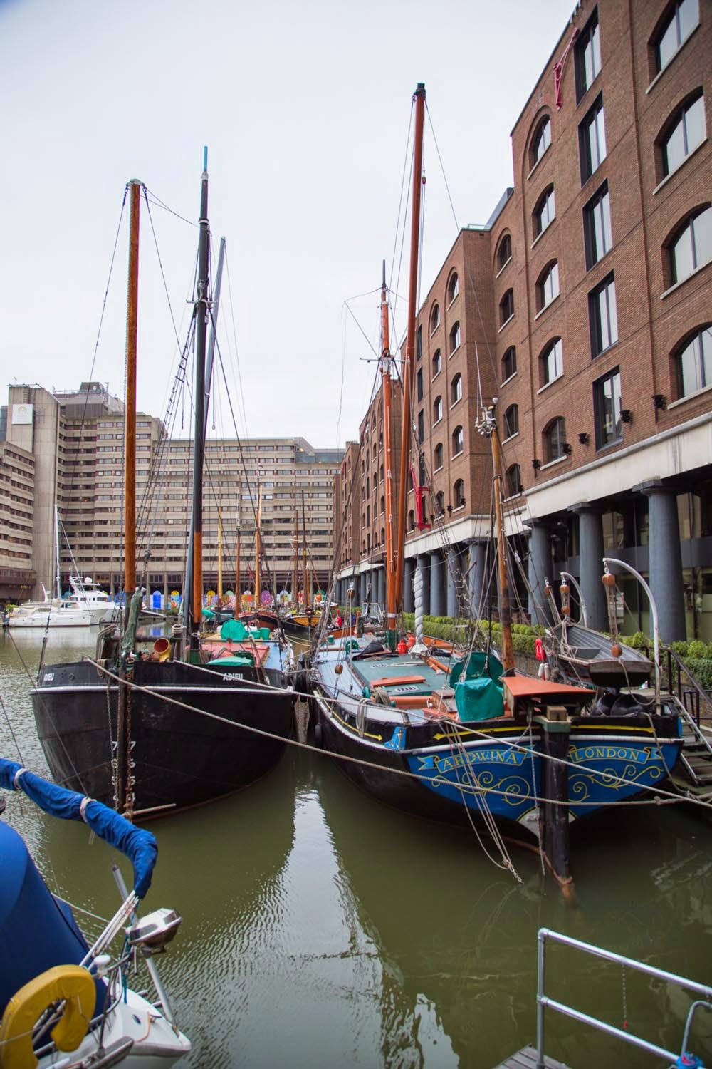 Esta preciosa zona del centro de Londres tenía como función la de ser el punto de entrada de las mercancías que llegaban a la capital desde donde se distribuían a toda Inglaterra. Estos muelles alcanzaron su apogeo en el siglo XVIII y están protegidos del río por una serie de exclusas que todavía funcionan en la actualidad. Los muelles de Santa Caterina toman su nombre de un antiguo hospital que existía en el lugar y en el cual se atendía caritativamente a marinos y comerciantes.